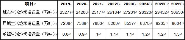 图表:中国环卫行业垃圾收集清运总量