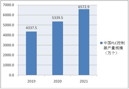 随着技术的进步,基础的PLC产品技术成熟度提升,模块化水平提高,近几年,我国PLC行业产量快速增长,产量从2019年的4337.5万个增长到了2021年的6572.9万个。