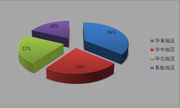 中国一次性注射器市场主要集中在华东、华中、华北地区,华东地区和华中地区占全国销量总量比例的60%左右,华北地区约占22%,其他地区占18%左右。