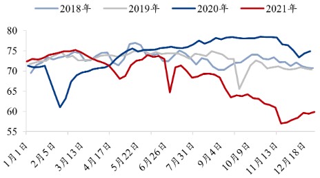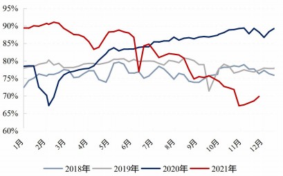 图表:2018-2021年全国焦化企业开日工率情况