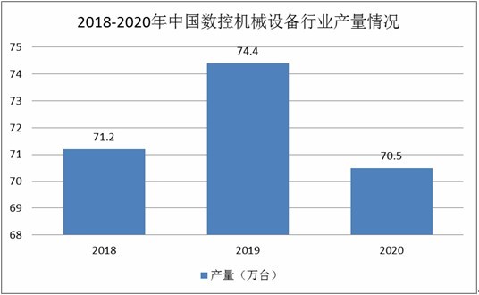 当前,以5G、大数据中心为代表的“新基建”正在助推越来越多的行业数字化转型,企业重视数字化建设,主动拥抱变革,精细化运营,降低成本,提高效率。2020年,中国数控机械设备行业产量约为70.5万台,较2019年下降了5.24%。
