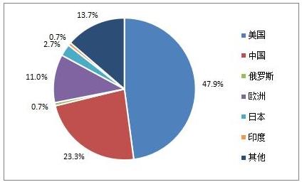 图表:2020年不同国家及地区遥感卫星发射数占全球的比重对比情况