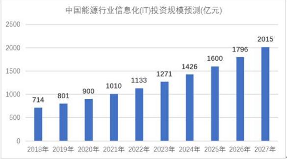 图表:2021-2027年中国能源行业信息化(IT)投资规模预测