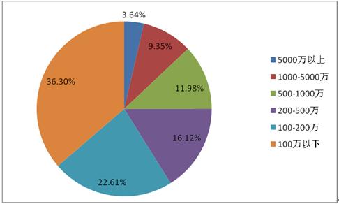 在这上万家企业中,注册资本在5000万(含)以上的仅有370家,注册资本1000-5000万(不含)的有951家,注册资本在500-1000万之间的有1219家,注册资本在200-500万(不含)的有1640家,注册资本在100-200万(不含)的有2300家,注册资本100万以下的则有3692家。