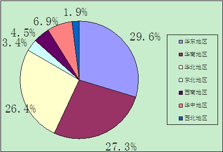 如图所示,返利网行业主要市场需求在华东地区与华南地区,华东地区与华南地区占比高达56.9%。