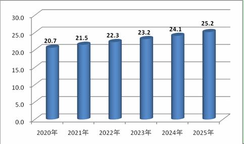 图表:2022-2025年房产证抵押贷款市场规模预测(万亿元)