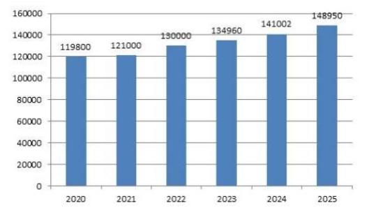 图表:2020-2025年中国冶金行业供给预测(单位:亿元)