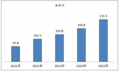 图表:2021-2025年华中地区卫浴陶瓷市场规模情况预测