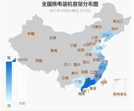图表一:全国核电装机容量分布