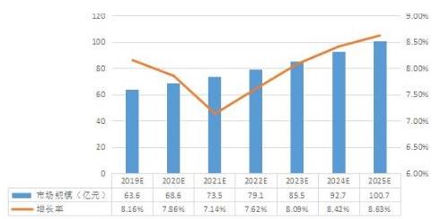 图表:2022-2025电钢琴行业市场规模及增长率预测
