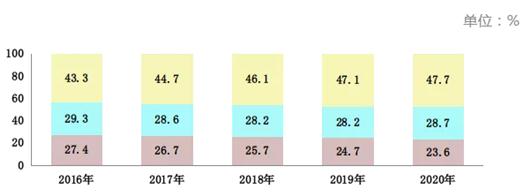 图表:近五年全国就业人员产业构成情况