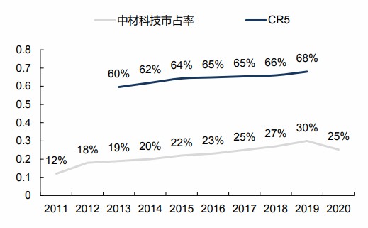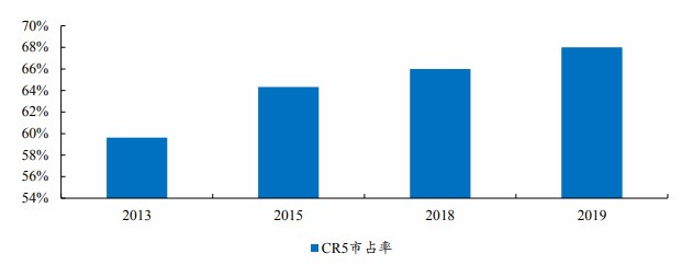 图表:国内风电叶片行业CR5市场占有率逐年提升