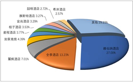 中国饭店业协会数据显示,截至2021年1月1日,国内中端连锁酒店品牌方面,维也纳酒店、全季酒店、麓枫酒店、如家商旅、星程酒店、桔子酒店、宜尚酒店、雅斯特酒店、喆啡酒店、希岸酒店。