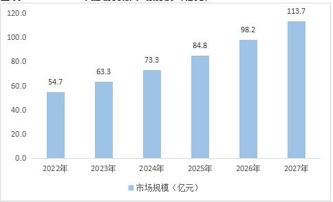2021年市场规模为47.2亿元。预测未来宠物药品需求不断上升,年复合增长率为15.77%,2022年市场规模为54.7亿元,2027年市场规模为113.7亿元。