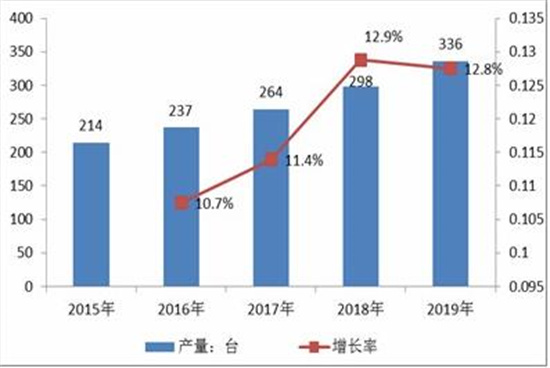 图表:2015-2019年华东地区核技术设备产量及增长率