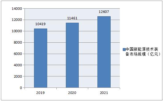 根据相关数据,2019-2021年我国新能源技术装备市场规模如下所示: