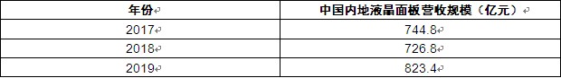 2019年我国内地液晶电视面板产品营收规模为823.4亿元,同比增长13.3%。2018年我国液晶电视面板的出货量虽然增长,但是由于市场供给大于需求的原因,导致大部分尺寸面板产品的价格下降,因此2018年虽然液晶面板出货量上升,但是产品营收却同比下降。