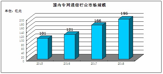从国内专网通信发展情况来看,2017年7月国务院办公厅公开发布《国务院办公厅关于印发国家突发事件应急体系建设“十三五”规划的通知》,明确到2020年,建成与有效应对公共安全风险挑战相匹配、与全面建成小康社会要求相适应、覆盖应急管理全过程、全社会共同参与的突发事件应急体系;2018年3月十三届全国人大一次会议第四次全体会议,国务院机构改革方案提出,拟组建应急管理部,提升专网需求。以上规划及改革方案的提出,将利好专网通信行业。2015年我国专网通信市场规模达到101亿元,到2018年市场规模增长至195亿元。