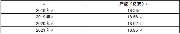图表:2018-2021年拖鞋行业产能