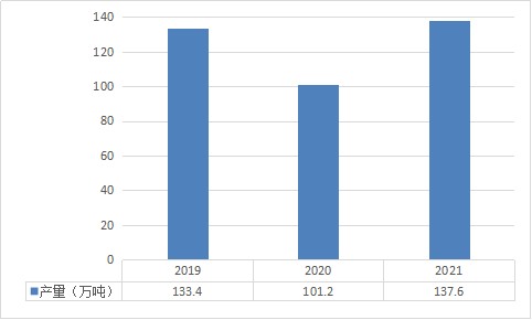尽管我国电子陶瓷行业近几年得到了快速发展,现已形成一定的规模,但由 于起步较晚,产品质量一致性、批量生产能力等方面都与国际知名企业存在一定 差距。2020年受国内疫情影响产量较2019年有所下降,2021年在经济快速复苏背景下产量增长至了137.6万吨。