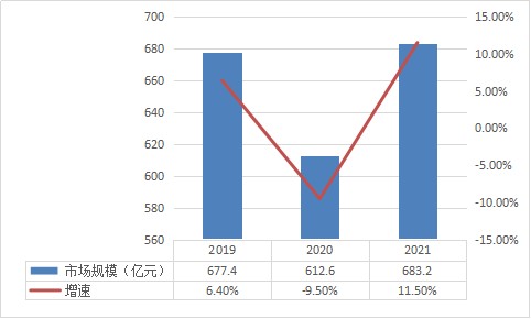 2020年受新冠疫情影响,中国电工陶瓷产销量出现较大幅度下滑,市场规模受此影响将至612.6亿元,2021年在经济快速复苏背景下迅速增长至了683.2亿元。