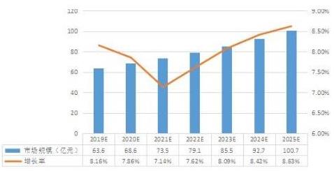 图表:2022-2025电钢琴行业市场规模及增长率预测