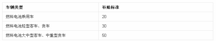 1. 燃料电池系统的额定功率不低于驱动电机额定功率的30%,且不小于30kW。燃料电池系统额定功率大于10kW但小于30kW的燃料电池乘用车,按燃料电池系统额定功率6000元/kW给予补贴。