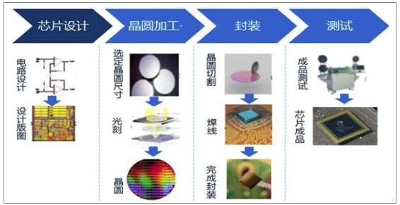 封装测试:是将生产出来的合格晶圆进行切割、焊线、塑封,使芯片电路与外部器件实现电气连接,并为芯片提供机械物理保护,并利用集成电路设计企业提供的测试工具,对封装完毕的芯片进行功能和性能测试。