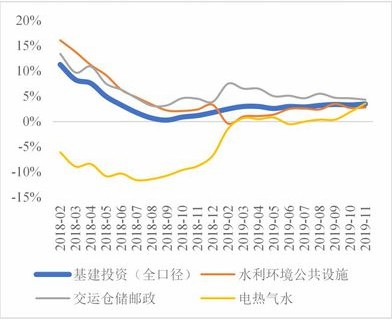 2019年道路、铁路、公路运输建设投资的增长促进了基建投资的复苏,下半年国家发布《西部陆海新通道总体规划》《交通强国建设纲要》等重大政策,预计2020年交通运输投资建设仍将是重点。公共设施管理业占基建投资的比重达40%,中央经济工作会议明确提出将引导资金投向供需共同受益的民生建设等短板领域,加强市政管网、城市停车场、冷链物流的建设, 2020年该领域投资将迎来新机遇。