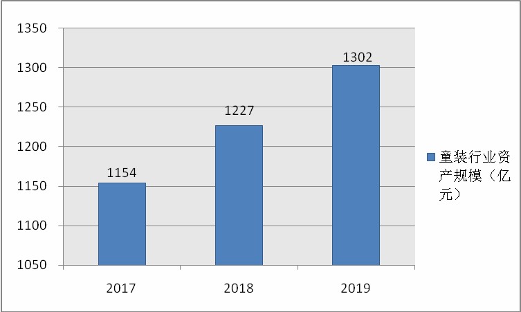图表:2017-2019年我国童装行业资产规模(单位:亿元)