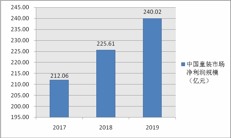 图表:2017-2019年我国童装市场净利润规模(单位:亿元)