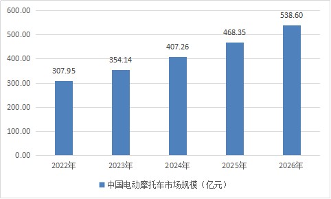 图表:2022-2026年电动摩托车行业市场规模(亿元)