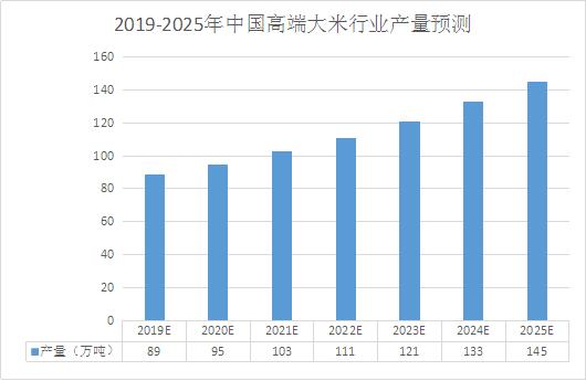 随着居民生活水平提高,人们对食品安全及品质的要求不断提升,对品牌小包装米的购买力不断增强,高端大米行业产业持续转型升级。随着大米产业转型升级加快,小包装米的销售额也不断攀升,品牌大米集中度相应提升。预计未来中国高端大米产量将会平稳增长,到2021年突破100万吨。