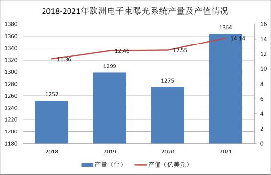 图表:欧洲电子束曝光系统产量及产值情况