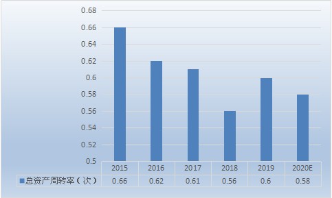 图表:2015-2020年生鲜冷链物流 行业总资产周转率