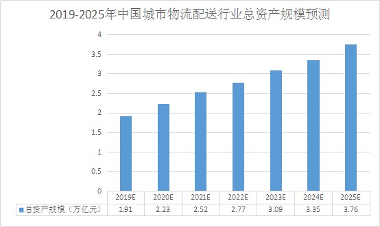 图表:2022-2025年中国城市物流配送行业总资产规模预测