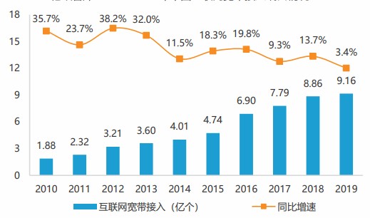 图表:2012-2019年中国互联网宽带接入端口情况