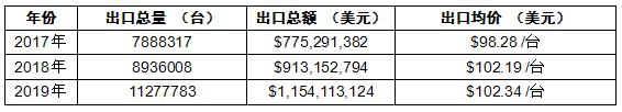 图表:2017-2019年POS机行业出口统计表