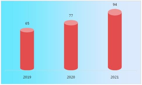 图表:2019-2021年中国工业机器人核心零部件供给规模(亿元)