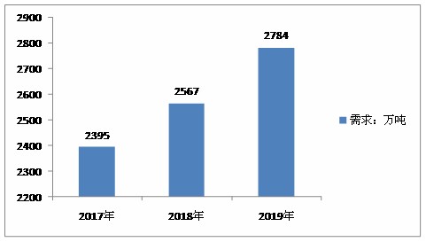 图表:2017-2019年聚丙烯行业市场需求分析