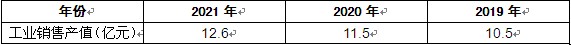 2019年中国清酒行业工业销售产值为10.5亿元,2020年工业销售产值为11.5亿元,2021年工业销售产值为12.6亿元。