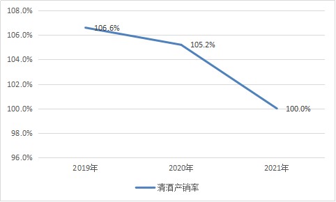 2019年中国清酒行业产销率为106.6%,2020年产销率为105.2%,2021年产销率为100%,产销逐渐平衡。
