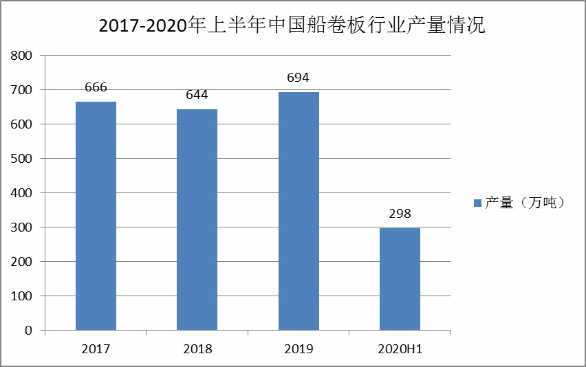 图表:2017-2020年上半年中国船卷板行业产量情况