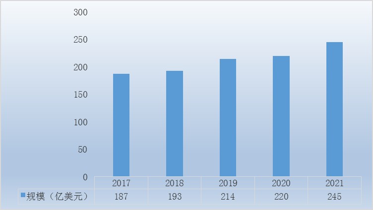 2018-2019年全球不断增长的节能需求、全球人口的持续增加以及发展中国家的城市化、工业化进程推动力全球氟泵市场规模的扩张,2020年全球受到新冠疫情影响市场规模增速下滑,其市场规模为220亿美元,2021年全球经济快速复苏,2021年年底全球氟泵市场规模至245亿美元水平。