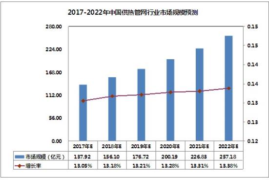 2021年供热管网市场规模约226.83亿元,2022年供热管网市场规模约257.81亿元。供热管网行业作为耗能较大的行业,面临着巨大压力,供热管网行业整改正在进一步加速。