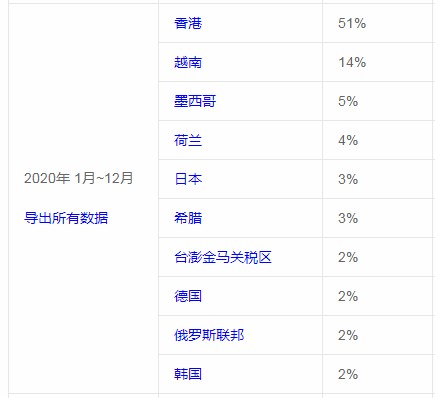 主要出口企业:常州天合光能有限公司、韩华新能源(启东)有限公司、常熟阿特斯阳光电力科技有限公司、惠州科锐半导体照明有限公司等。