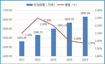 随着汽车需求市场的上升,新能源汽车爆发式增长,预计2021-2025年车用钢板市场规模将保持稳定的上升趋势,2025年车用钢板规模将达1665.39万吨。
