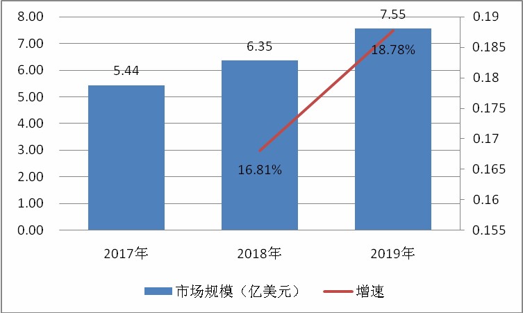 图表:2017-2019年全球锡基阻燃剂市场规模及增速情况