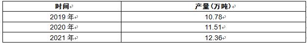 图表:2019-2021年我国毛发氨基酸行业生产规模