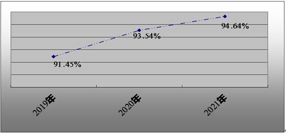 图表:2019-2021年我国毛发氨基酸行业产销率分析